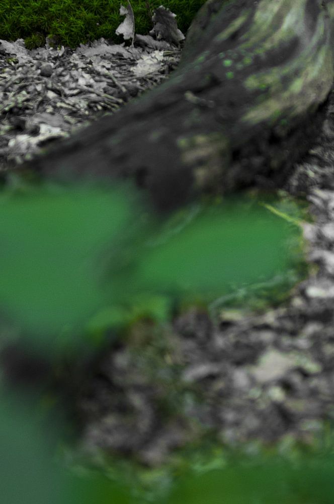 Een zwart-wit en kleuren foto uit het bos. par Leon Schijf