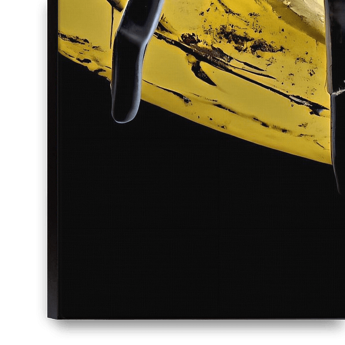 Illustration créée numériquement d'une araignée noire sur une banane jaune sur fond noir style low key.