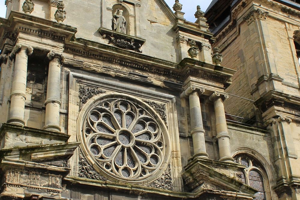 Une vue extérieure de l'église St Rémy du 17ème siècle à Dieppe, située en Normandie dans le nord de la France. Belle architecture de la façade de l'église.