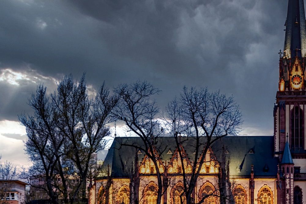 L'église des Rois mages à Francfort-Sachsenhausen avec son éclairage nocturne