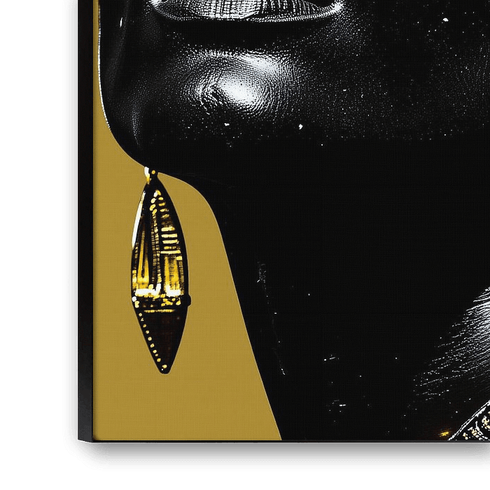 Idéale pour les passionnés de mode, les créateurs de bijoux et les amateurs d'art glamour moderne, cette œuvre célèbre l'art de l'ornement et la beauté de la force féminine.