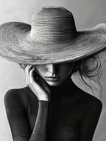 Achetez ce portrait Élégante dame monochrome par PixelPrestige sur toile, aluminium, ArtFrame ou photographie (encadrée), impression d'art en haute qualité et tout format.