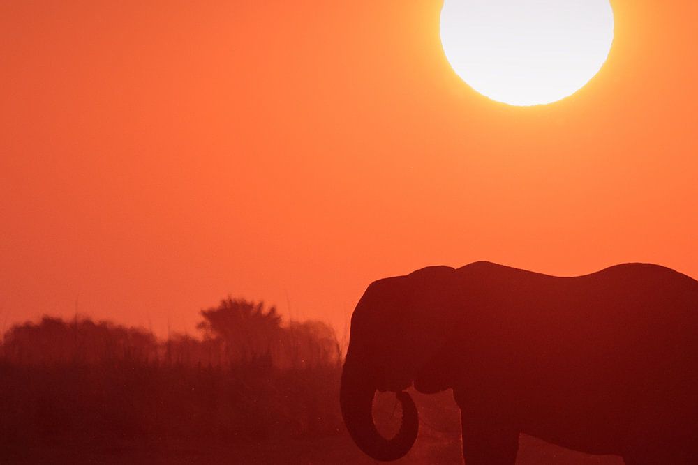 Lors d'une promenade en bateau au coucher du soleil, j'ai pu prendre cette photo. Le guide a pris tout le temps nécessaire pour mettre le bateau dans la bonne position. L'éléphant juste sous le soleil. Un moment à ne jamais oublier.