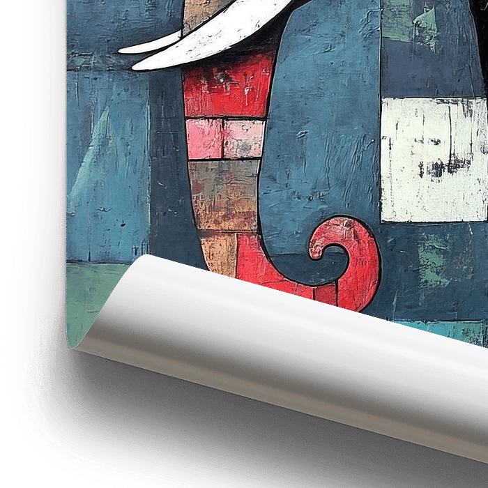 Éléphant coloré - Il s'agit d'un tableau d'éléphant coloré composé de nombreux blocs de couleur qui, ensemble, forment une silhouette reconnaissable dans un style moderne et abstrait.