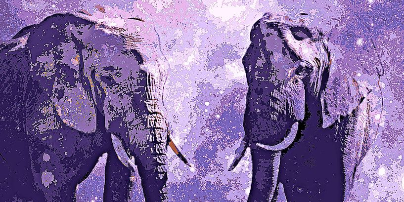 Achetez cette œuvre d'art abstraite Éléphants à un point d'eau mixed media par Werner Lehmann sur toile, aluminium, ArtFrame ou photographie (encadrée), impression d'art en haute qualité et tout format.