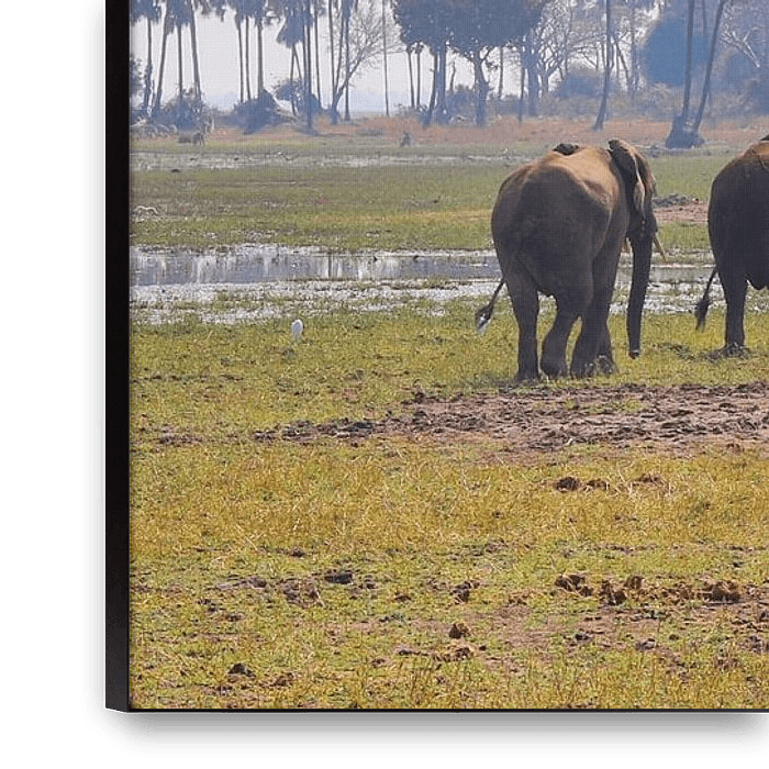 Achetez cette photo Éléphants en transit dans la savane du Malawi par Natuurpracht Kees Doornenbal sur toile, aluminium, ArtFrame ou photographie (encadrée), impression d'art en haute qualité et tout format.