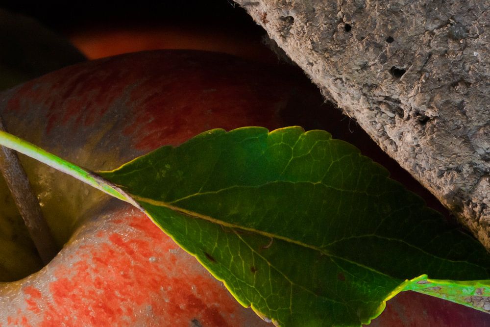 Een puur hollandse rode appel in een zeer bijzondere afbeelding van een kist. Slechts één hoek van de kist is in beeld gebracht