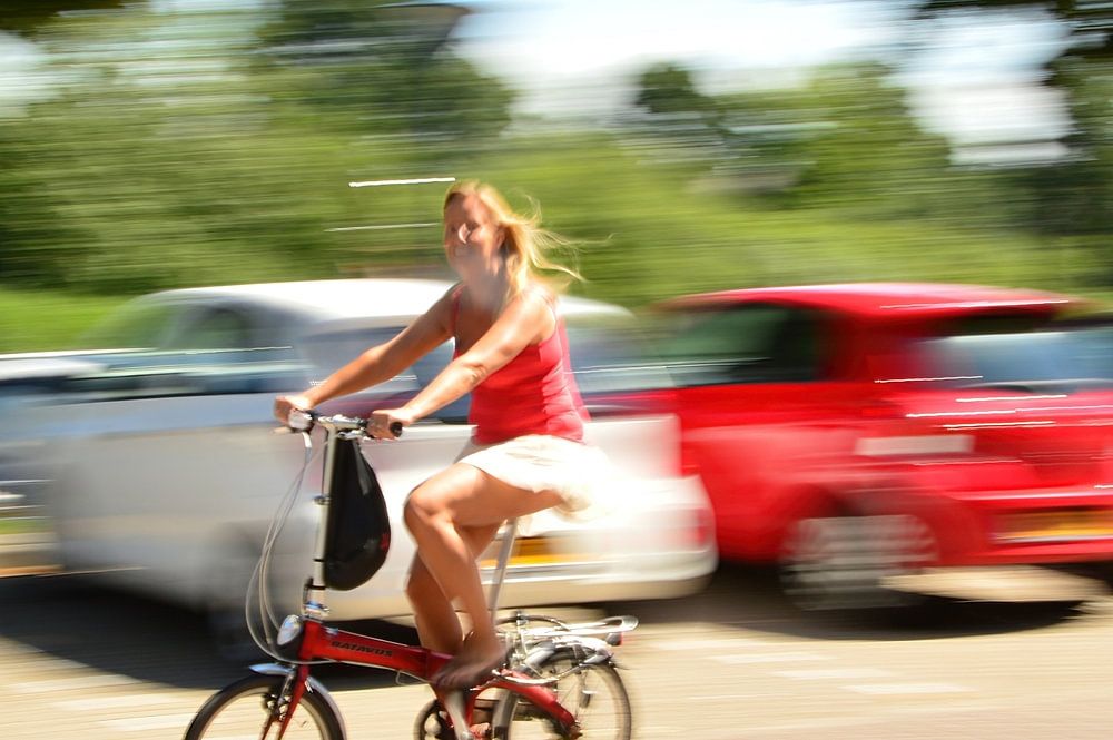 Ma femme prend toujours son vélo pliable pour se rendre au travail afin d'éviter les frais de stationnement. La voici sur son vélo dans notre rue de la ville de Huizen, aux Pays-Bas. J'ai vraiment aimé la façon dont le sens du mouvement est apparu. J'ai pensé que le titre Office girl était approprié dans ce cas.
