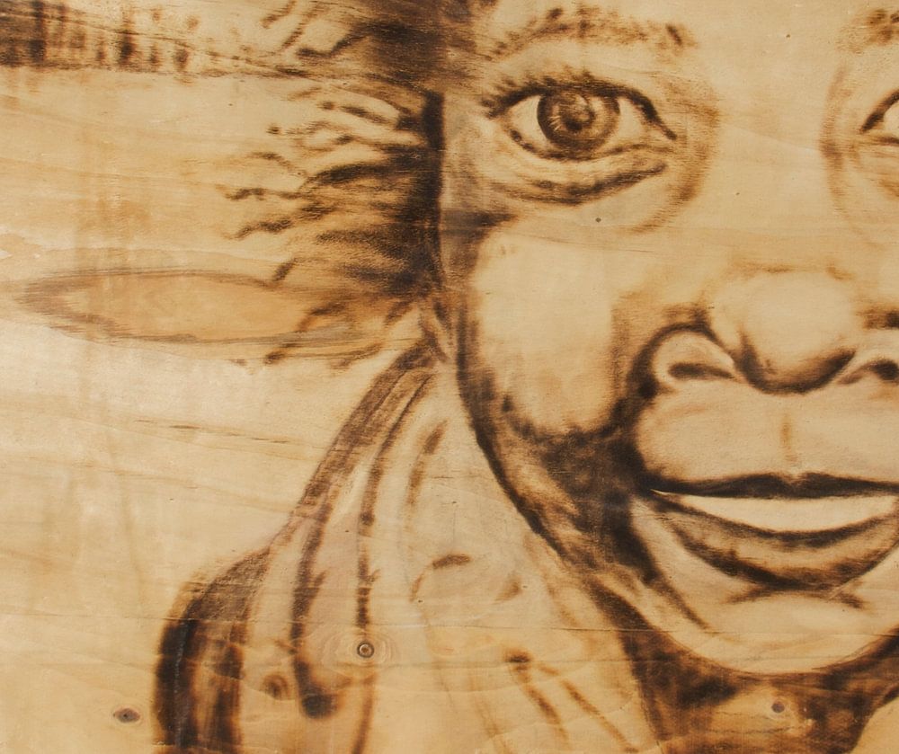 La gravure est une technique où le bois est chauffé avec une flamme de gaz d'environ 1100 degrés. De cette façon, on peint avec le feu. Il donne une atmosphère semblable à celle d'un aérographe.