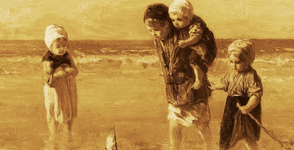 Les enfants de la mer est une peinture du maître néerlandais Jozef Israëls. Il s'agit d'une version roulée avec des couleurs sépia dorées qui ont été données un bel aspect ensoleillé.