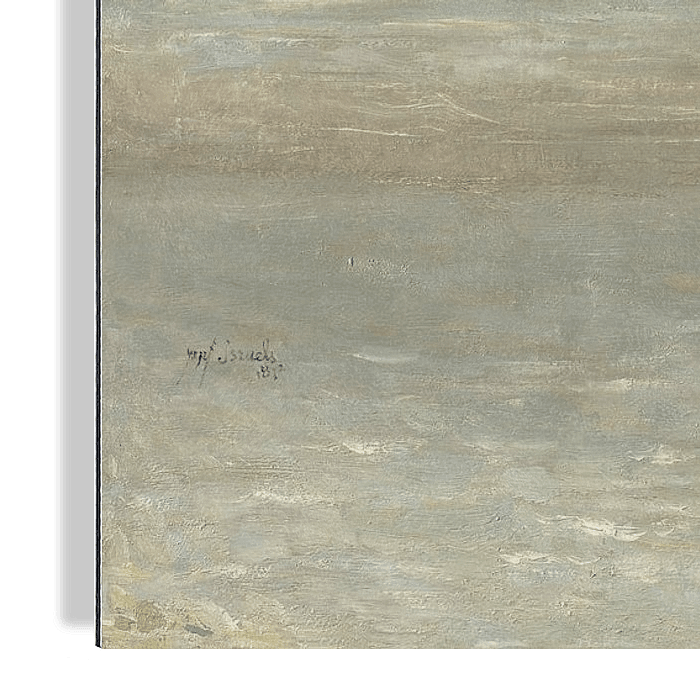 Cette belle scène contient un message. Les enfants des pêcheurs avec leurs vêtements miteux et leurs jouets dérisoires nous donnent une image de leur avenir. L'aîné porte le fardeau de la famille sur ses épaules et le petit bateau représente la lourde vie en mer. Jozef Israëls a peint ce thème pour la première fois en 1863. C'était très populaire et Israël l'a répété plusieurs fois par la suite.