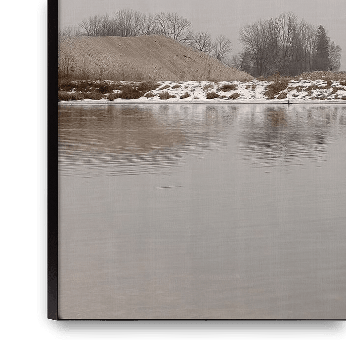 Le Kochlsee, en Haute-Bavière, est entouré d'un épais brouillard qui relie harmonieusement l'eau et le ciel. Un étroit contrefort de la rive conduit doucement le regard vers l'eau. La neige dessine des traces claires le long de la rive, les arbres apparaissent silencieux et discrets. Une image calme et minimaliste. Tout semble à la…