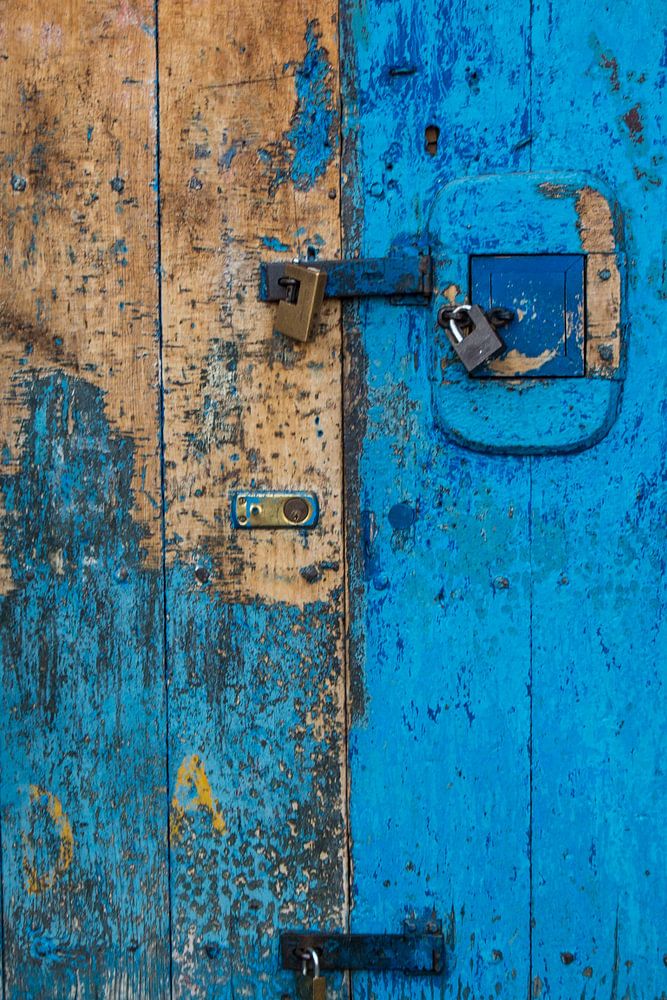 Oude verweerde koloniale deur in Cusco Peru