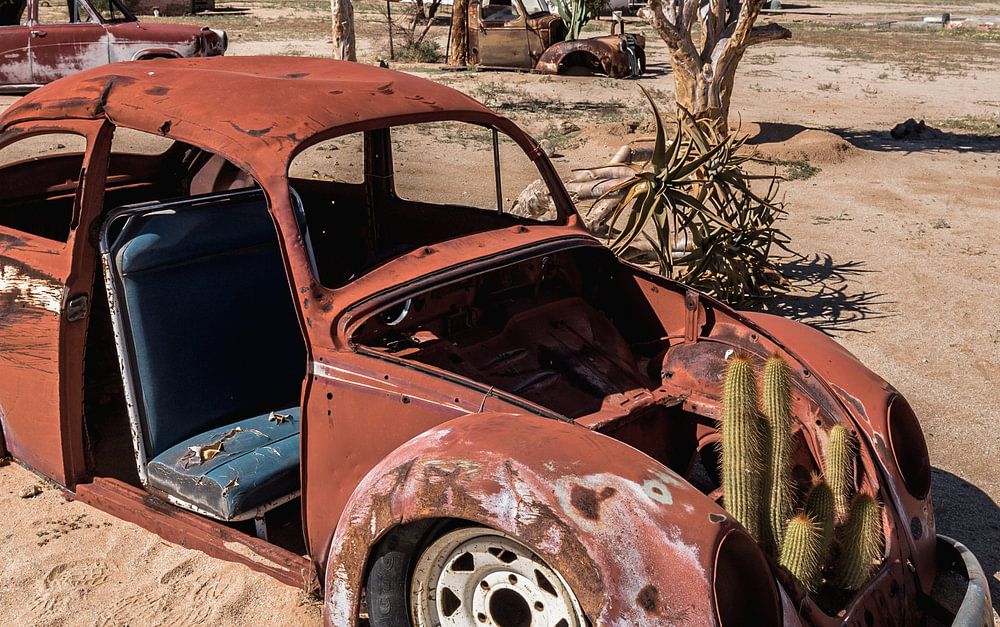 Partout en Namibie, on rencontre des épaves de voitures dans le désert. La beauté de la déchéance.