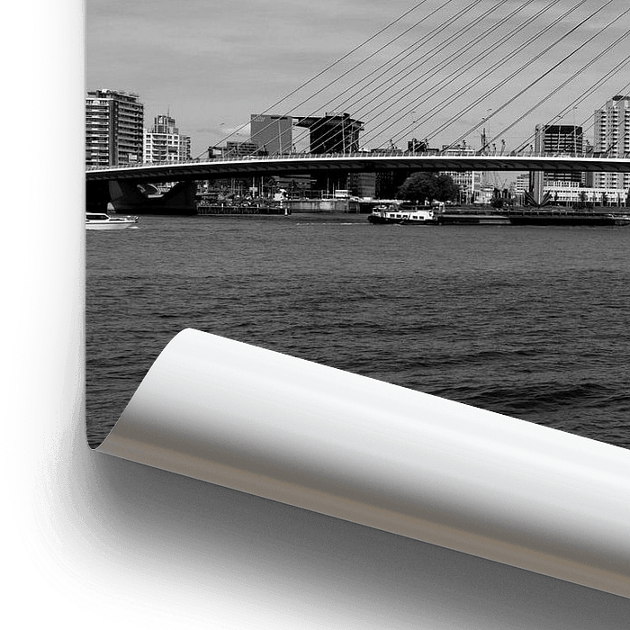 zwart wit foto van de Erasmusbrug te Rotterdam