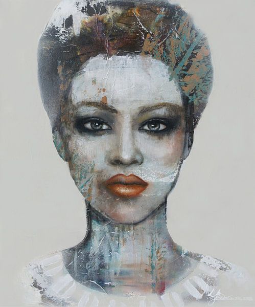 And She Becomes est une œuvre expressive réalisée à partir de techniques mixtes et issue de la série Vrouwen (Femmes), qui met l'accent sur la transformation, l'émotion et la force intérieure. Le portrait montre une femme en mouvement, comme si elle évoluait lentement et prenait sa place. Des couleurs douces et puissantes se fondent les unes dans les autres, tandis que des textures superposées et des lignes spontanées créent de la profondeur et du dynamisme. De petits détails dans la structure de la peinture et des accents d'encre confèrent à l'œuvre un caractère vivant, presque respirant. Cette œuvre symbolise la croissance et le changement. Elle représente une jeune femme en pleine vie qui forge peu à peu sa propre identité. L'amour joue ici un rôle important : l'amour pour soi-même, pour la vie et pour les personnes qui l'entourent. Le moment où tout se met en place et où elle devient de plus en plus forte dans ce qu'elle est. L'œuvre est née de manière intuitive, en combinant différents matériaux et en laissant les émotions déterminer la direction à prendre. En construisant des couches et en les laissant partiellement se détacher, un jeu entre contrôle et liberté se crée.