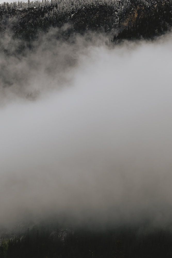 Cela me permet de bénéficier de conditions météorologiques magnifiques, avec des arbres fraîchement recouverts de neige au sommet des montagnes et des conditions brumeuses. C'est toujours secrètement mon préféré lorsqu'il s'agit de conditions météorologiques non ensoleillées.