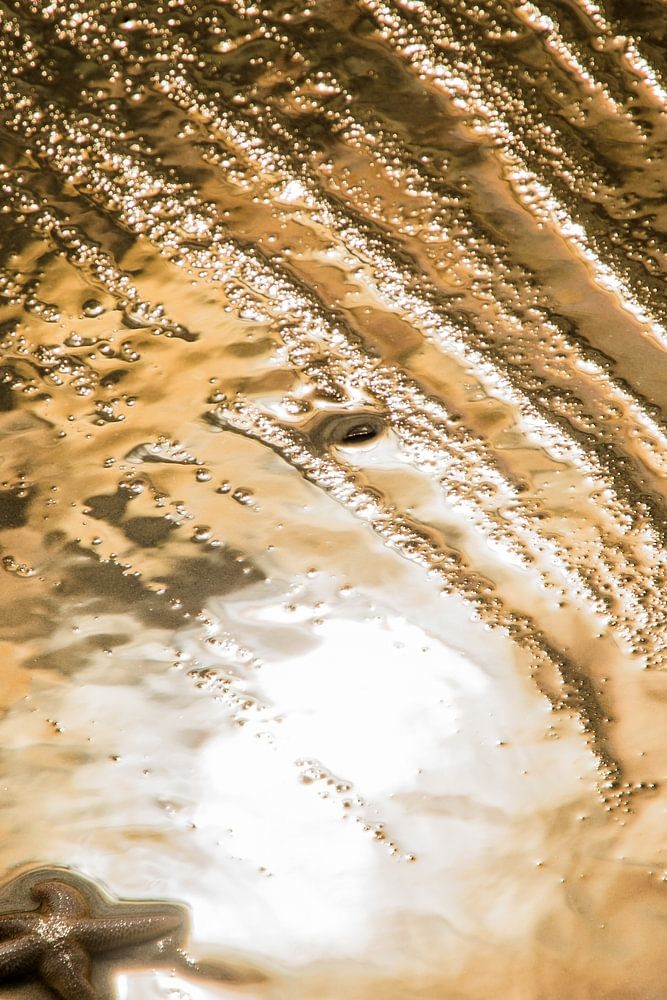 Une étoile de mer délavée sous la lumière dorée du soleil sur la côte danoise.