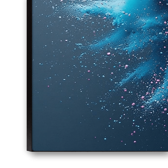 Une explosion de couleurs roses et bleues sur un fond bleu foncé.