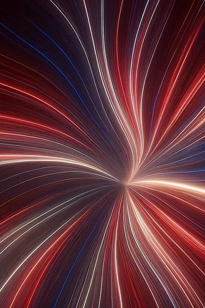 Une fontaine de lumière jaillit dans l'obscurité - le rouge, le blanc et le bleu dansent comme des comètes enflammées. Cette image célèbre le mouvement, la puissance et le rythme festif de la créativité.