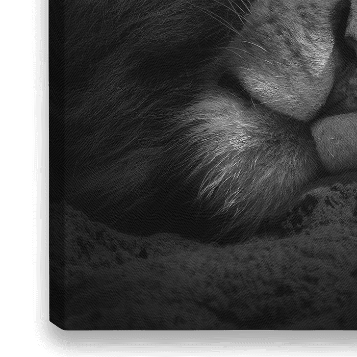 Un lion endormi en noir et blanc