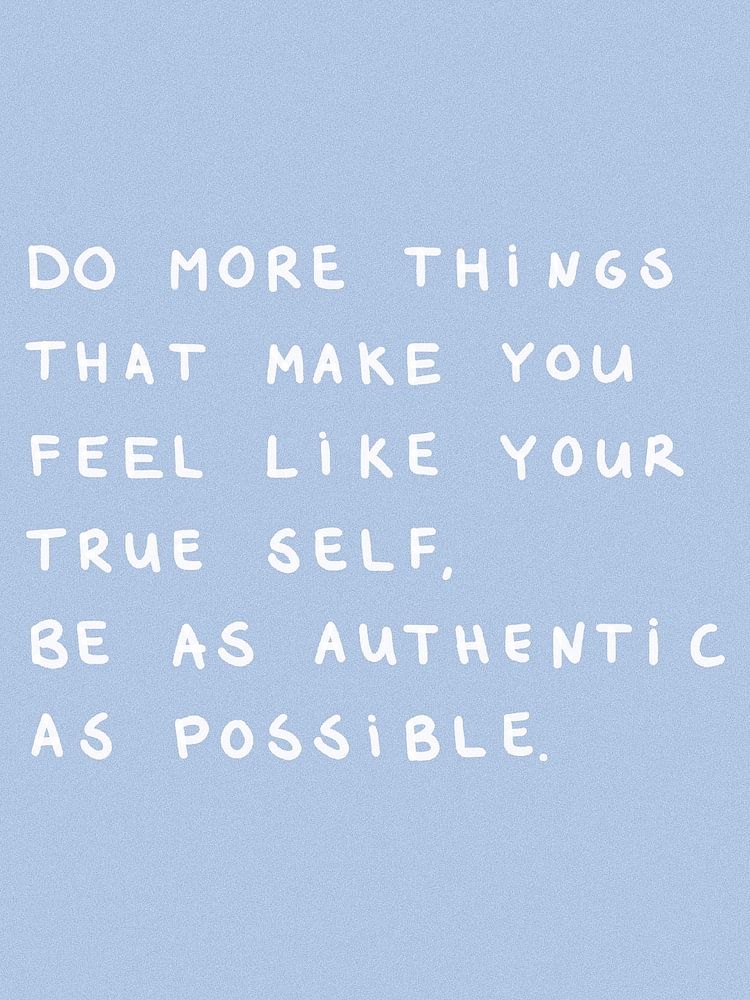 Faites plus de choses qui vous font sentir comme votre vrai moi, soyez aussi authentique que possible" Citation positive et motivante en caractères manuscrits sur un fond bleu clair.