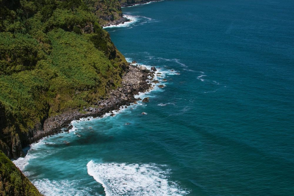 Cette photographie capture une imposante falaise des Açores, où les rochers déchiquetés se détachent nettement sur la mer ou le ciel. L'image met en évidence les formes et les textures spectaculaires de la falaise, rendant palpable la puissance de la nature. La composition crée une image épurée et visuellement attrayante, où la superposition de la roche, de l'eau et de l'horizon renforce la profondeur. Le résultat est une image qui combine à la fois tranquillité et dynamisme et qui s'adapte à différents styles d'intérieur. Les couleurs et les lignes naturelles guident le regard du spectateur le long de la falaise et du paysage environnant, ce qui en fait un élément immersif dans un espace. Cette photo peut animer des espaces de vie, des lieux de travail ou des bureaux avec un accent subtil de nature, d'aventure et de puissance naturelle.