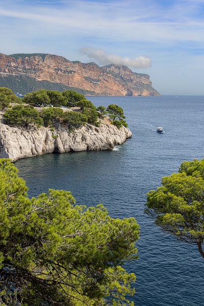 Vue depuis la calanque de Port-Miou près de Cassis dans le parc national des Calanques sur les falaises de Cassis sur la côte méditerranéenne dans le sud de la France.