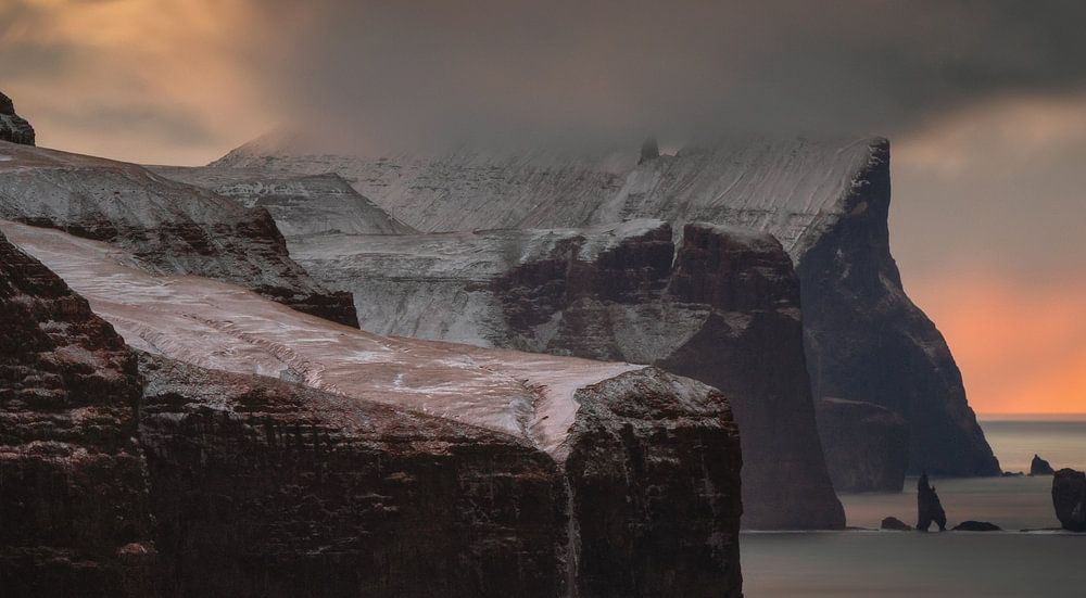 Falaises de Streymoy et d'Eysturoy au coucher du soleil, îles Féroé