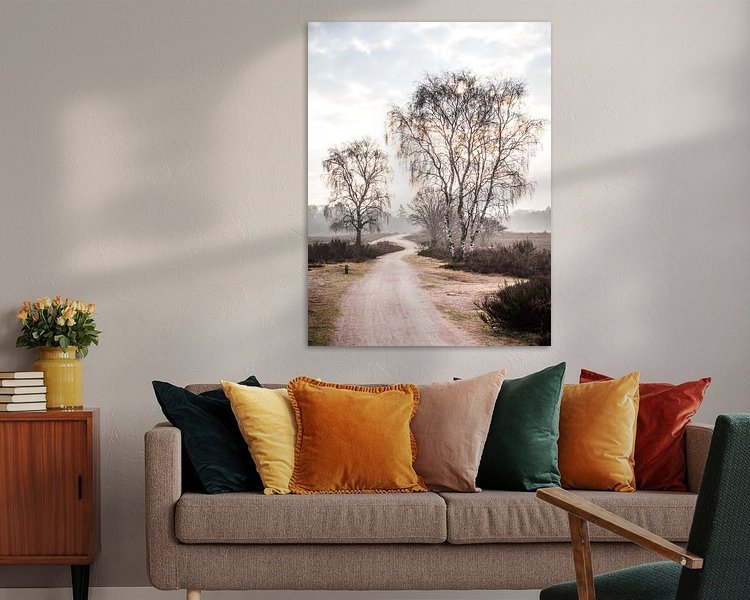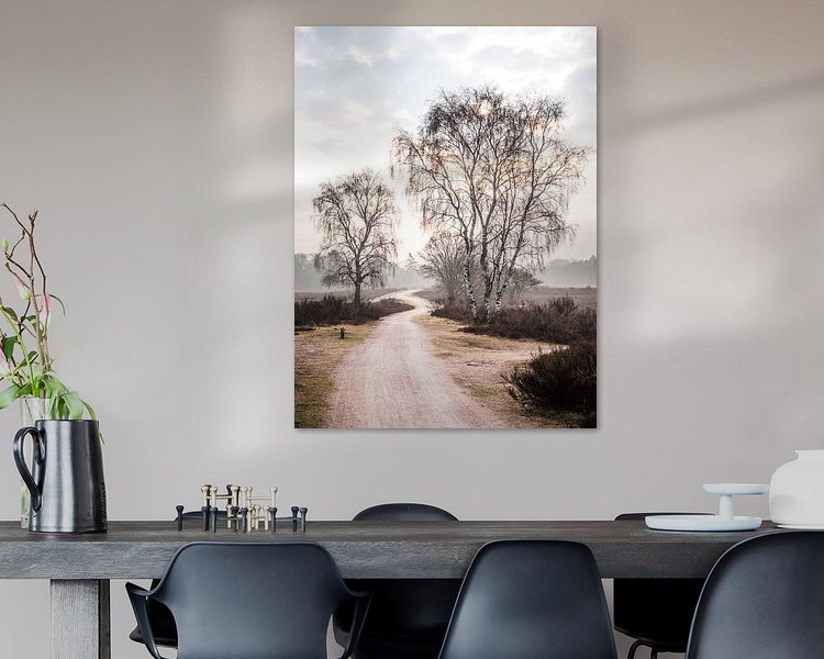 Vu tôt mardi matin à Westerheide, près de Hilversum : le soleil levant crée des stries orange parmi les branches de bouleau dénudées.