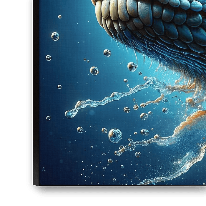 Les effets dynamiques de l'eau et le jeu d'ombre et de lumière font ressortir le motif de manière impressionnante et créent une atmosphère unique et créative dans la pièce. Le tableau mural est un accroche-regard parfait pour les habitations modernes, les bureaux, les galeries ou comme cadeau insolite pour les amoureux des animaux et les fans d'art. Elle incarne l'attachement à la nature, la transformation et l'individualité et apporte un message puissant dans chaque ambiance.
