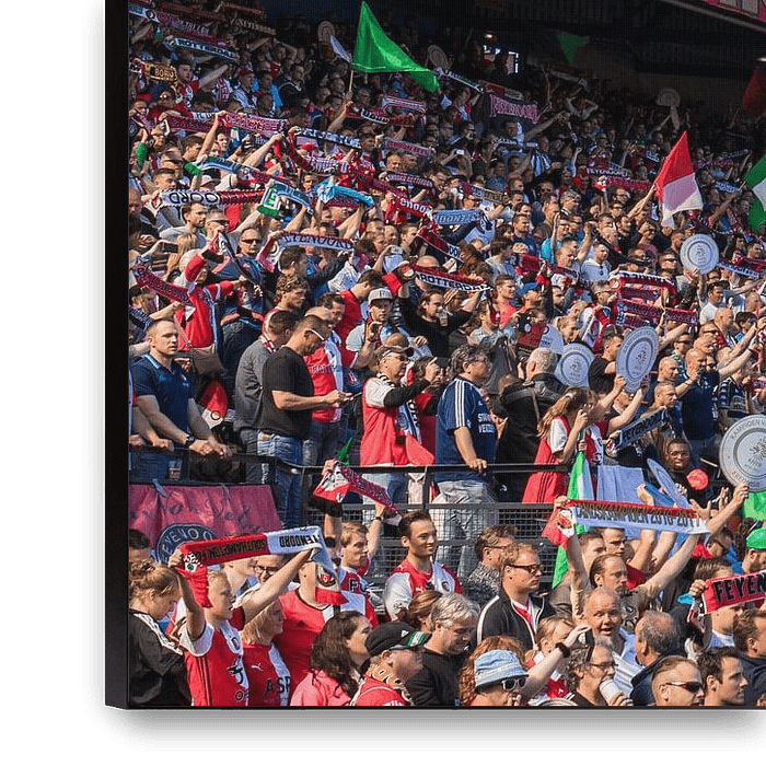 Photo de l'énorme fête qui a éclaté à De Kuip après le match gagné contre Heracles Almelo. Le Feijenoord Rotterdam est redevenu champion des Pays-Bas à Kuip après 18 ans, grâce notamment à trois buts de Dirk Kuyt.