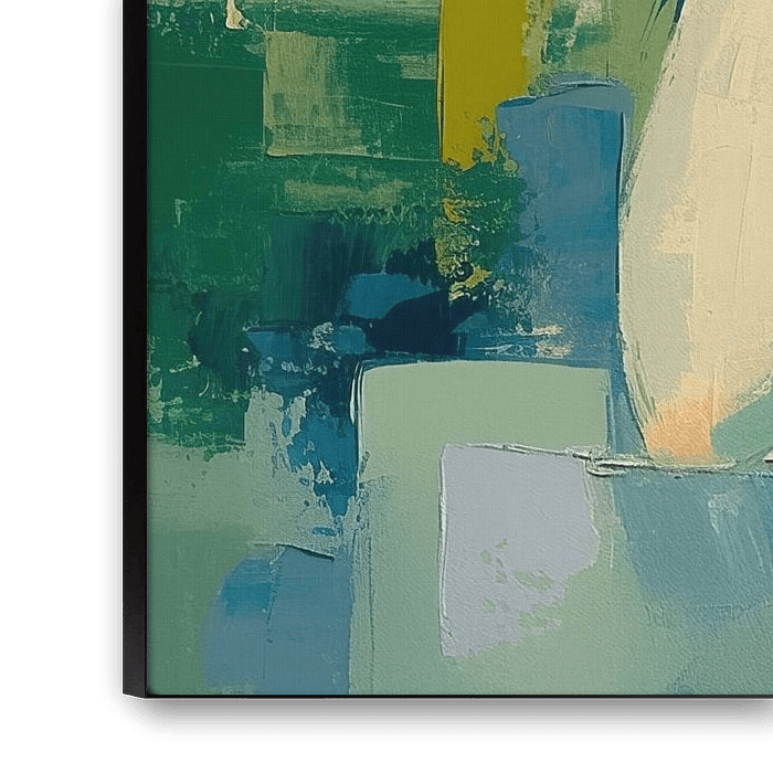 Femme avec couleurs | Portrait abstrait de femme - Cette peinture abstraite représente une femme à la pose détendue, avec des couleurs pastel douces telles que le vert clair et le jaune qui s'associent à des zones de couleur claires, donnant à la peinture un aspect moderne.