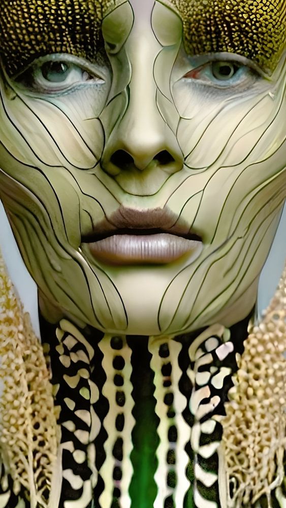 Portrait d'une femme futuriste dans les tons de la nature. Une beauté poétique créée par la fusion de la nature et de l'homme.