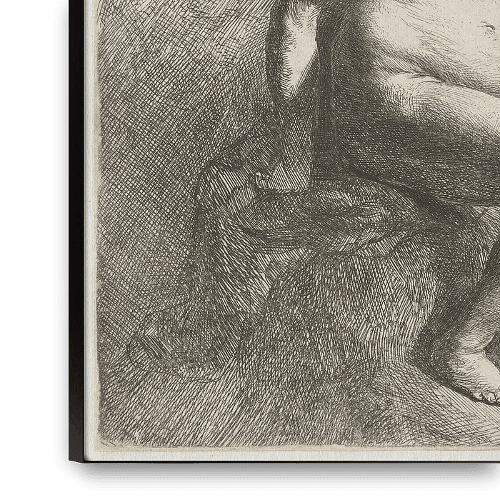 Achetez Femme nue, assise sur une plate-forme, Rembrandt van Rijn en tant que reproduction sur toile, aluminium, ArtFrame ou photographie (encadrée), impression d'art en haute qualité et tout format