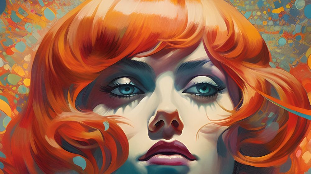 A propos de "Femme, profil, visage parfait, géométrie, couleurs vives"