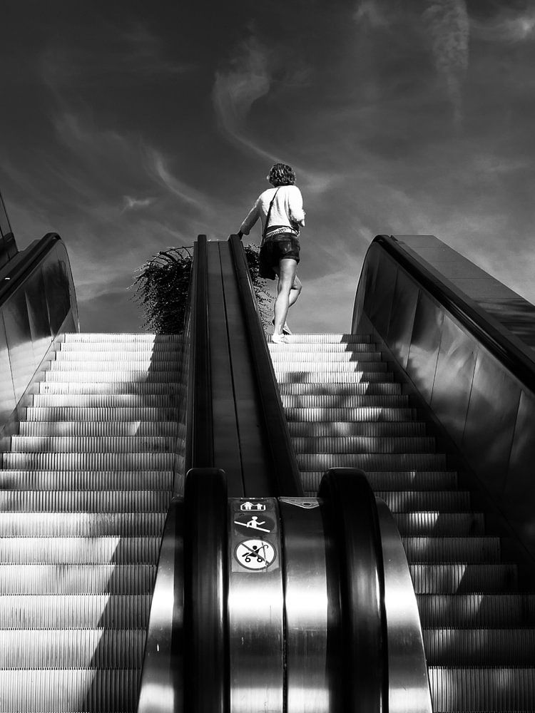Achetez cette photo de Rotterdam Femme sur un escalator par Fokko Muller sur toile, aluminium, ArtFrame ou photographie (encadrée), impression d'art en haute qualité et tout format.
