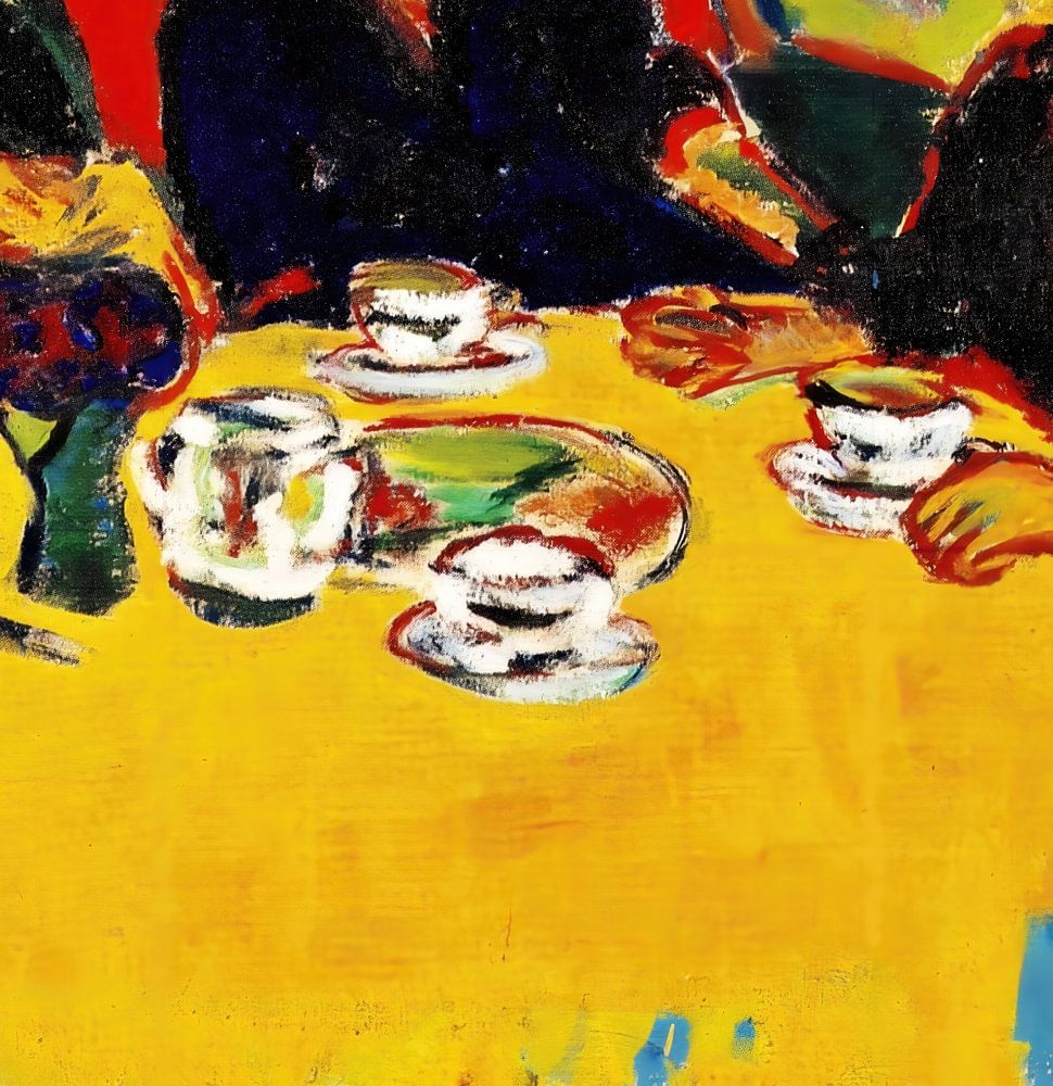 Femmes buveuses de café d'Ernst Ludwig Kirchner est une peinture vibrante et dynamique qui capture l'essence de la vie urbaine moderne. L'œuvre représente un groupe de femmes réunies dans un café, engagées dans une conversation et savourant leur tasse de café. L'utilisation audacieuse de la couleur, le coup de pinceau énergique et les formes angulaires donnent une impression de vitalité et de mouvement. Le style expressionniste de Kirchner confère intensité et émotion à la scène, reflétant l'énergie et l'excitation de la vie urbaine. L'accent mis sur les femmes et leurs interactions sociales met en lumière les thèmes de la compagnie, des loisirs et de l'évolution du rôle des femmes dans la société.
