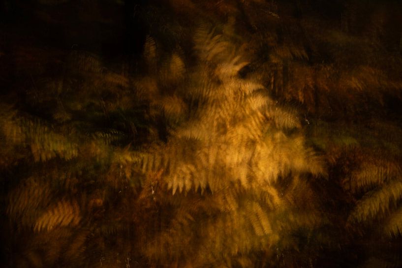 L'utilisation du mouvement intentionnel de la caméra crée une image abstraite passionnante de la forêt et des fougères où la lumière attire l'œil.