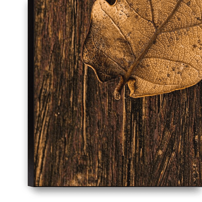 Feuille d'automne sur bois coloré, photographiée avec un Canon 5d mark IV et un objectif macro Sigma 105 mm. Convient pour les gros caractères !