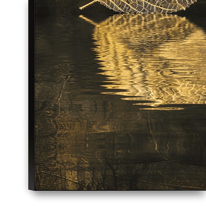 Découvrez le charme apaisant de cette œuvre d'art, où une feuille dorée flotte sereinement sur des eaux calmes aux tons sépia. La feuille détaillée avec ses nervures finement travaillées souligne la fragilité de la nature, tandis que l'eau réfléchissante évoque une ambiance profonde et contemplative. Idéale pour décorer n'importe quelle…