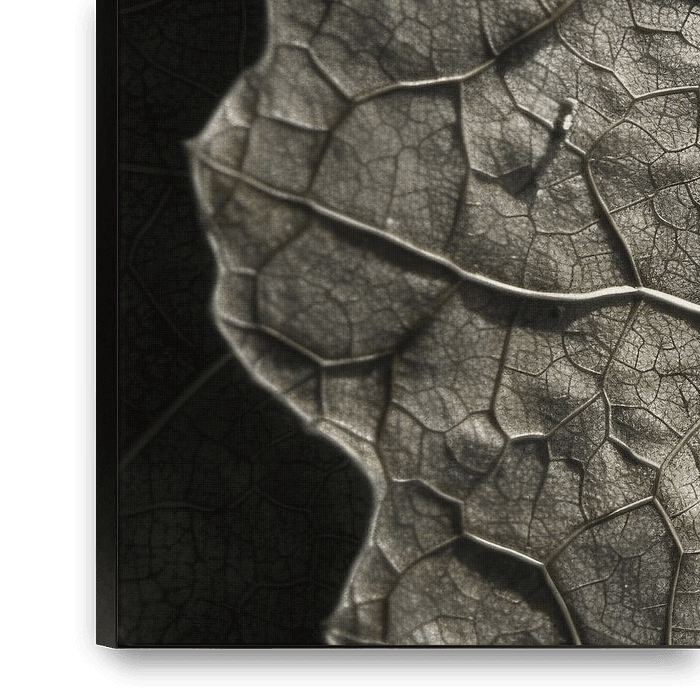 Cette œuvre d'art impressionnante capture les détails époustouflants d'une feuille d'automne dans une macrophotographie fascinante. La structure fine des nervures de la feuille, associée aux tons chauds et rouillés de l'orange et aux zones sombres contrastées, met parfaitement en valeur la beauté naturelle et le caractère éphémère de…
