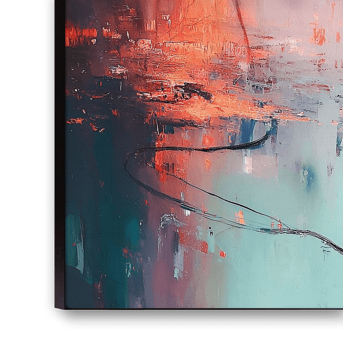Version abstraite et évocatrice d'une peinture représentant une journée d'automne au bord d'un petit lac.