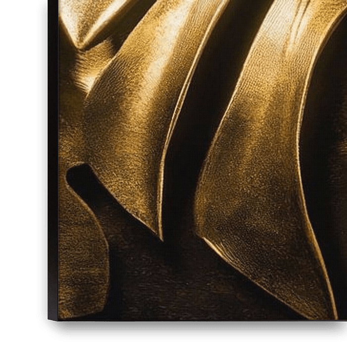 En or scintillant, les feuilles de monstera artistiquement conçues dégagent une élégante touche d'ambiance tropicale. Leurs formes sinueuses et leurs incisions marquées confèrent à la composition une sensation de mouvement et de vivacité. Le doux contraste avec un fond de couleur sombre renforce le rayonnement luxueux et invite à rêver…