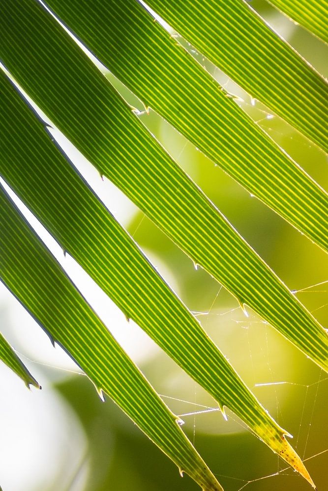 Les feuilles captent la lumière du soleil du matin au jardin botanique de Berlin. Début avril, il fait encore froid dehors, mais les serres offrent une oasis tropicale. J'y ai passé des heures avec mon appareil photo. Le soleil permet de voir facilement les veines et les lignes des feuilles et les fils d'une toile d'araignée. Les plantes à l'arrière-plan scintillent dans la lumière et créent un doux bokeh.