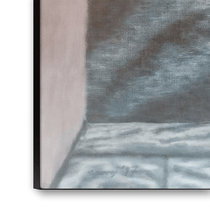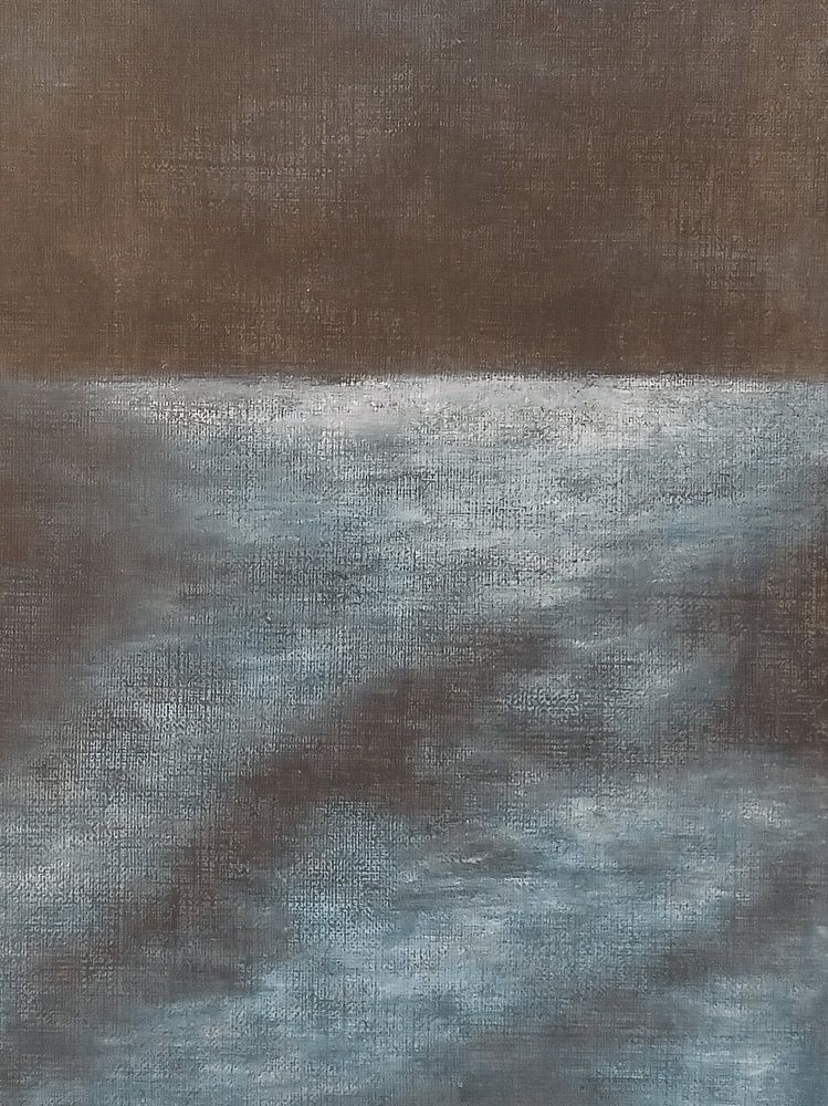 Inspirée par les nombreux bâtiments historiques et ruines de la Grèce, j'ai créé ce motif. Une porte, un passage dont on ne voit pas ce qu'il y a devant. La pleine lune ne se reflète pas seulement sur la mer, mais aussi sur le sol déjà érodé. Dans les années 1990, j'ai passé des nuits entières dans des baies à attendre le lever de la lune pour faire des diapositives à partir desquelles j'ai ensuite peint ce motif à la maison. L'original est une huile sur papier de 48 x 36 cm.
