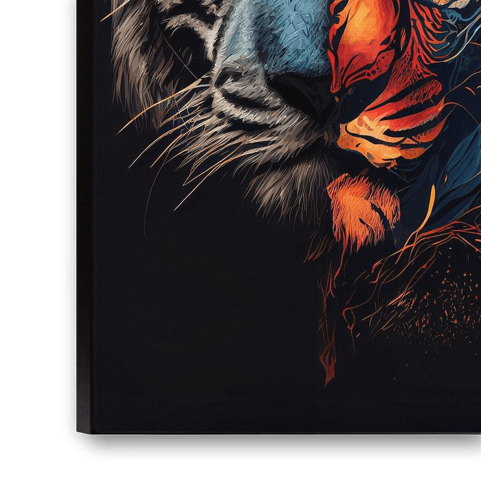 Un mélange féroce de feu et de givre, mettant en valeur la double personnalité d'un prédateur majestueux par des touches vibrantes et picturales. Une étude fascinante de la dualité.