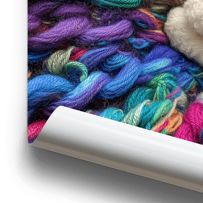 Mignon agneau dans un tas de laine colorée.