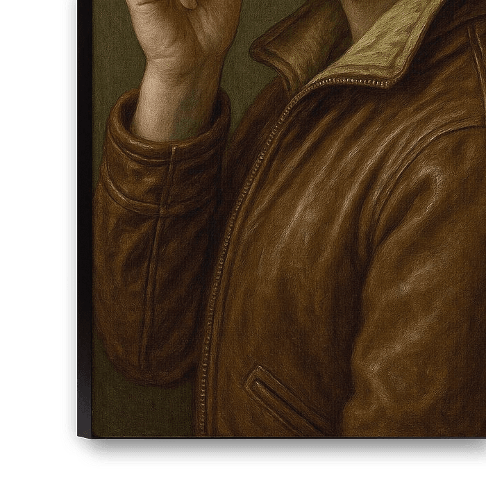 La lumière douce, l'aspect serein et les détails subtils restent fidèles au vieux maître, tandis que l'accessoire à la mode donne à l'œuvre d'art une touche fraîche et contemporaine. Une œuvre qui attirera tous les regards de ceux qui aiment l'art avec du caractère et un clin d'œil au présent.