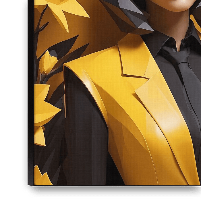 Achetez cette œuvre d'art florale Fille renard floral low poly, noir et jaune par 1xMerch sur toile, aluminium, ArtFrame ou photographie (encadrée), impression d'art en haute qualité et tout format.